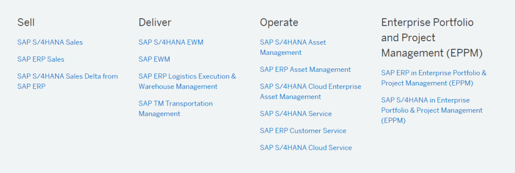 - Choose a particular category or process step you might be interested in – e.g. Procurement, Extended Warehouse Management, Transport Management, etc.