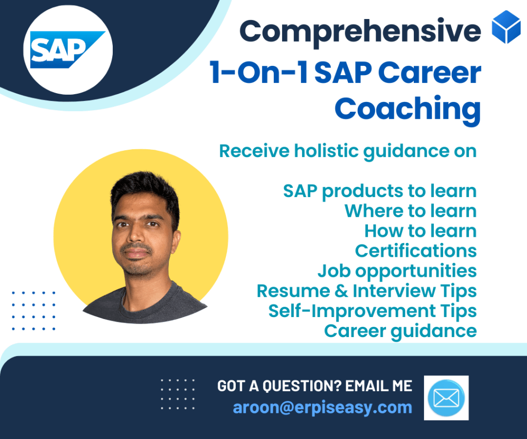 This isn’t a SAP troubleshooting session, or a technical/functional coaching session but rather a personalized coaching experience tailored to your SAP journey. While I bring a wealth of SAP insights, the focus is on your career growth within the SAP realm.
